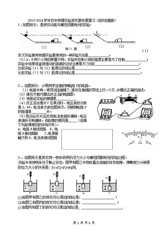 2013-2014学年初中物理实验探究题专题复习(无答案)
