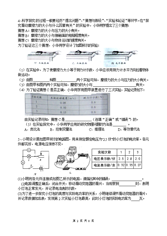 (4)改正后当滑片P在某点时,电压表的示数是3.4V,电流表示数如图所示,则被测电阻R的阻值是__ Ω。