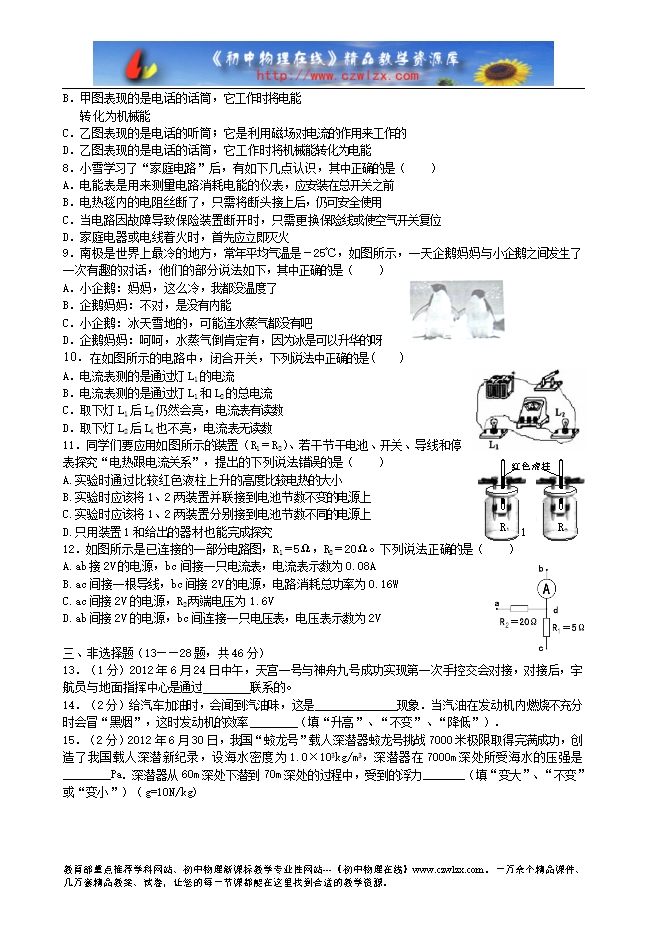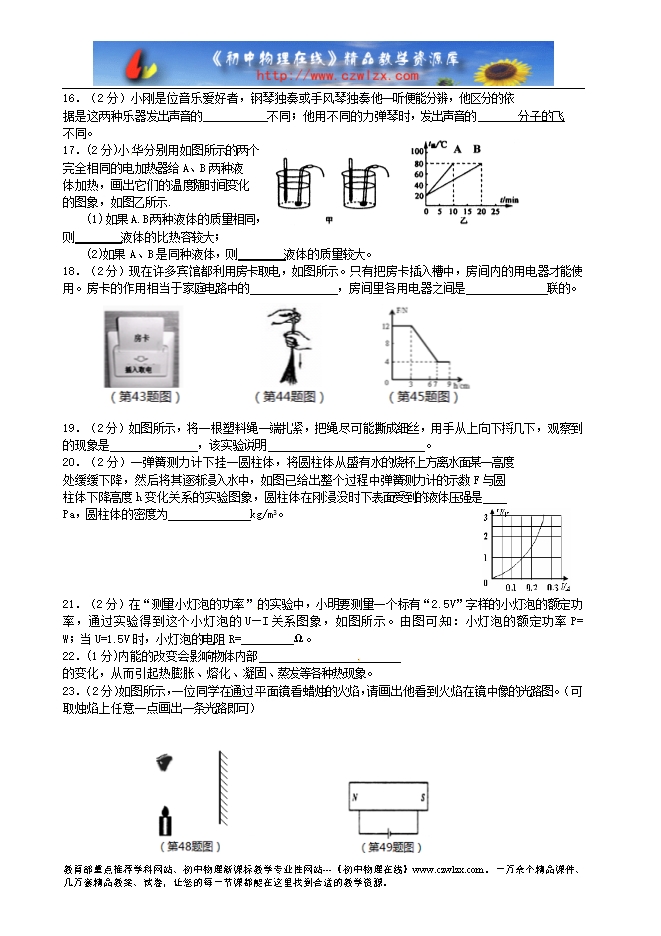 - 下一份试卷:哈尔滨市道外区2014年初中升学调研测试物理试题及答案(一)