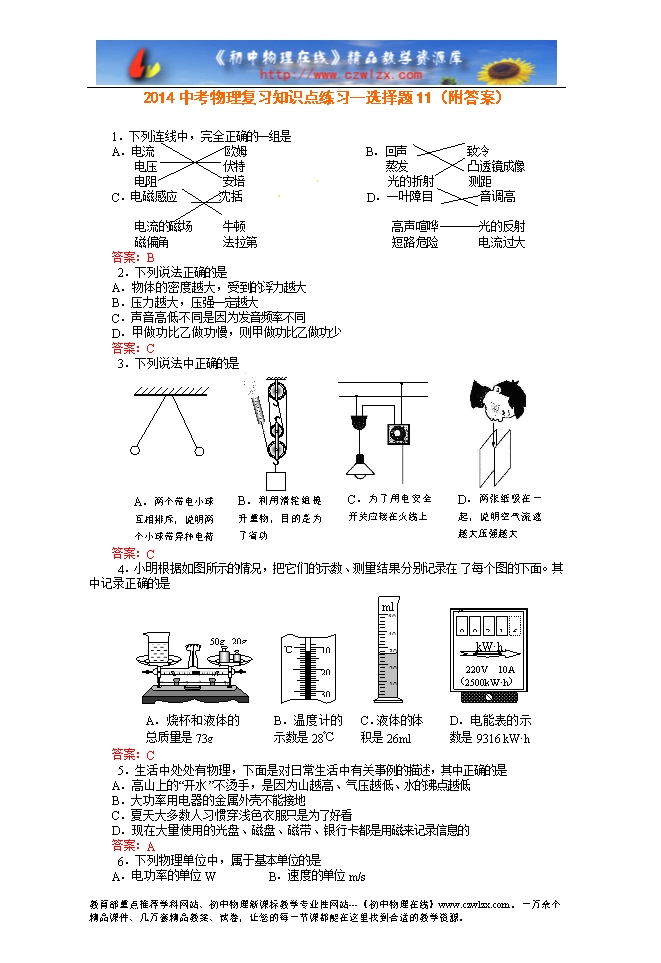 C.电磁感应 沈括 D.一叶障目 音调高[来源:学_科_网]