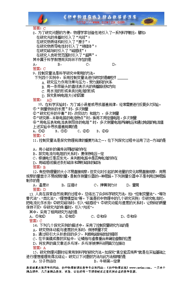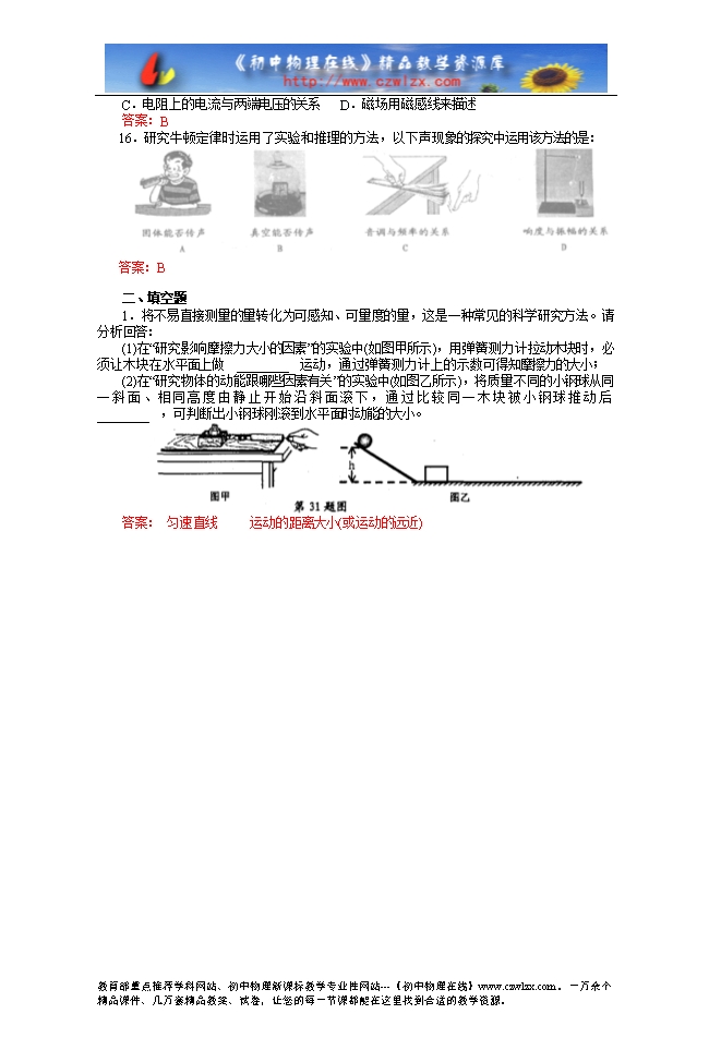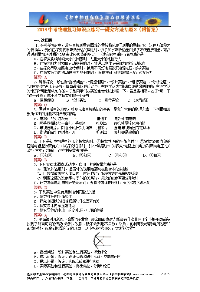 2014中考物理复习知识点练习--研究方法专题3(附答案)