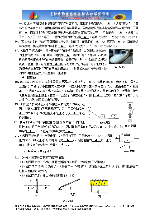 - 1322020-2021年江苏省兴化市物理八年级第二学期期末试卷(word版,含答案)