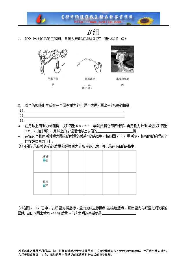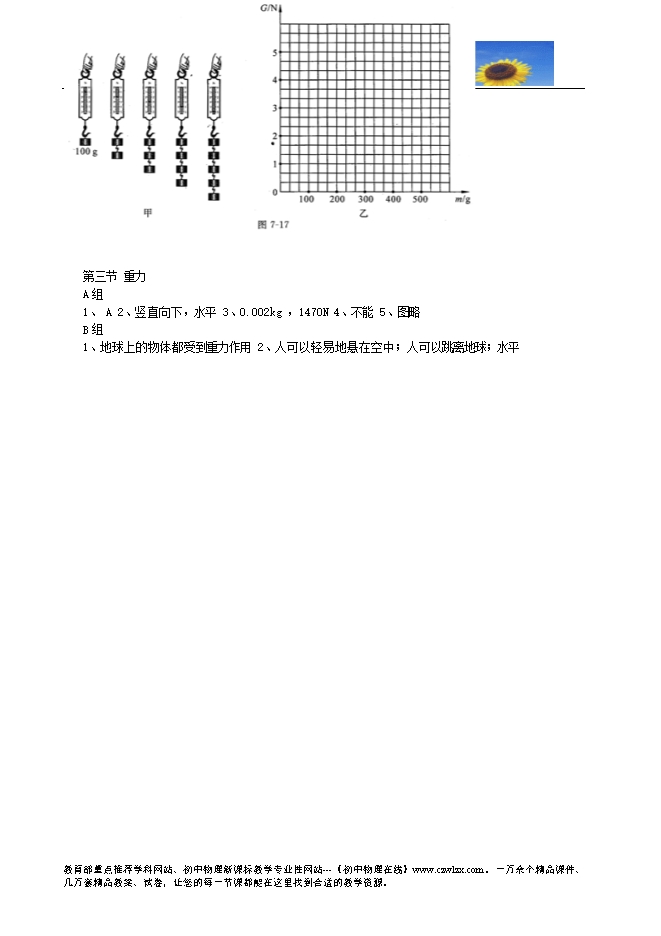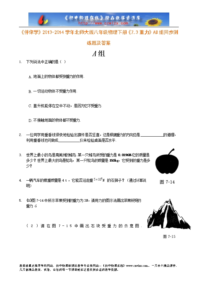 《伴你学》2013-2014学年北师大版八年级物理下册《7.3重力》AB组同步测练题及答案