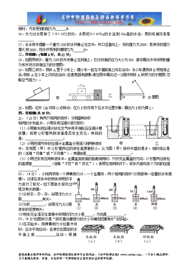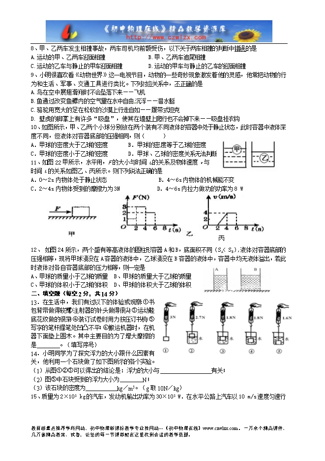 - 2997安徽省枞阳二中2013-2014学年度第二学期期末考试八年级物理试卷及答案