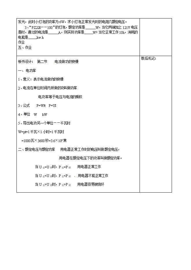 - 646沪科版:《16.2电流做功的快慢》PPT+教案(太康县张集二中)