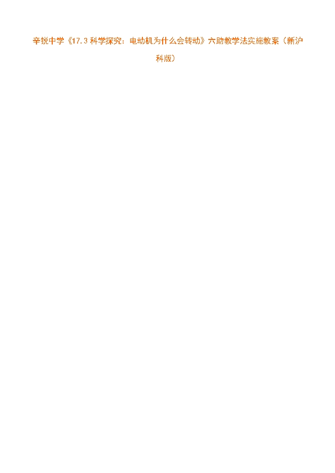 辛锐中学《17.3科学探究:电动机为什么会转动》六助教学法实施教案(新沪科版)