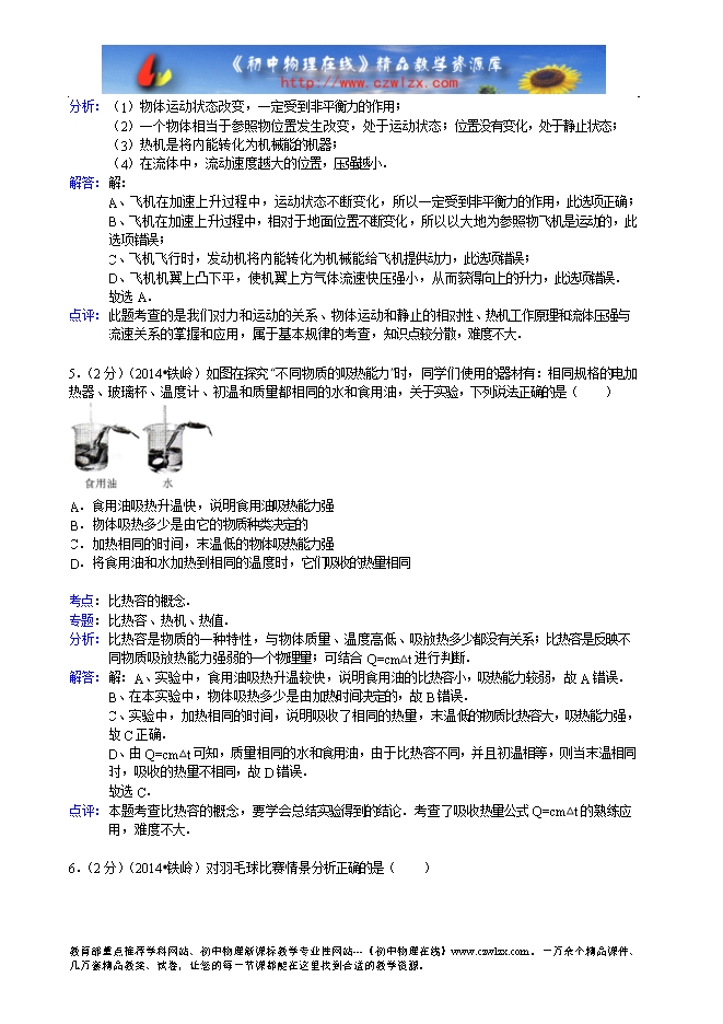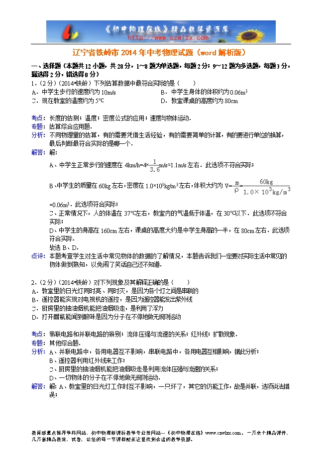 辽宁省铁岭市2014年中考物理试题(word解析版)