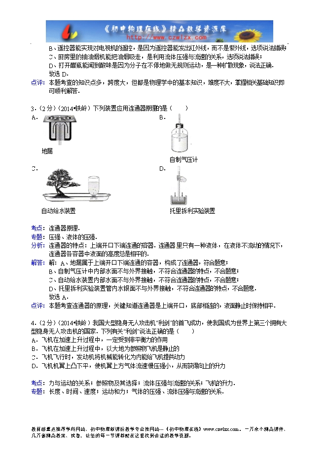 2.(2分)(2014•铁岭)对下列现象及其解释正确的是( )
