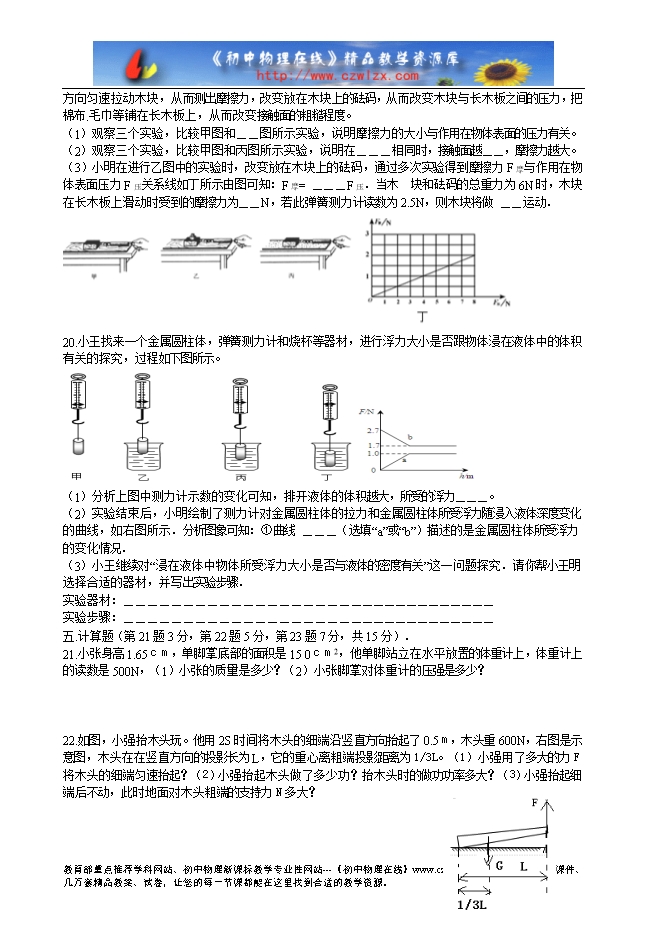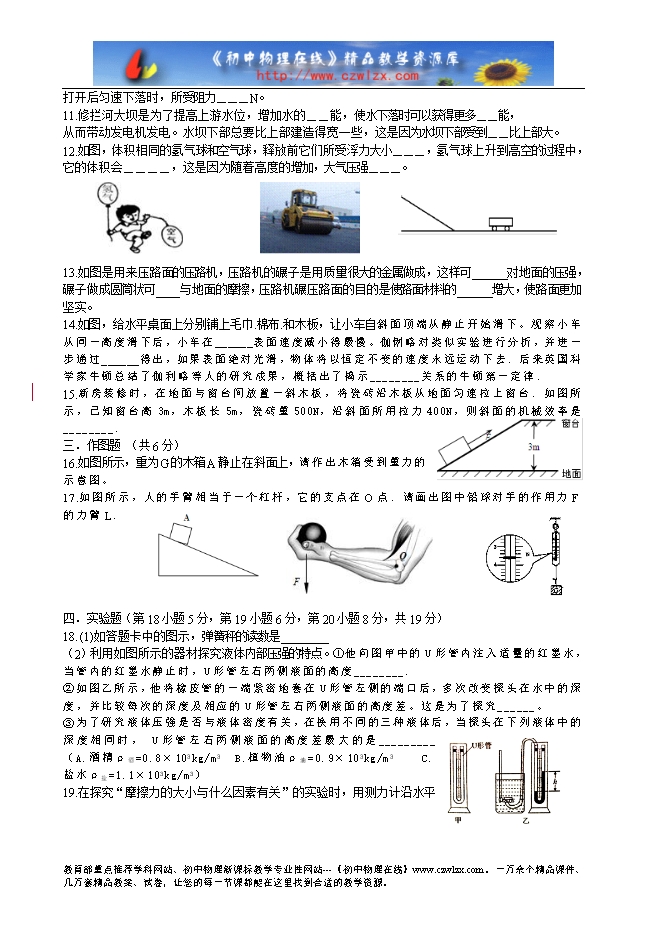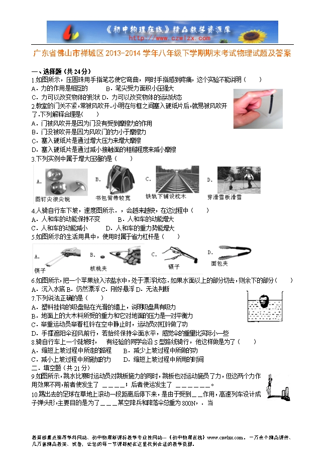 广东省佛山市禅城区2013-2014学年八年级下学期期末考试物理试题及答案
