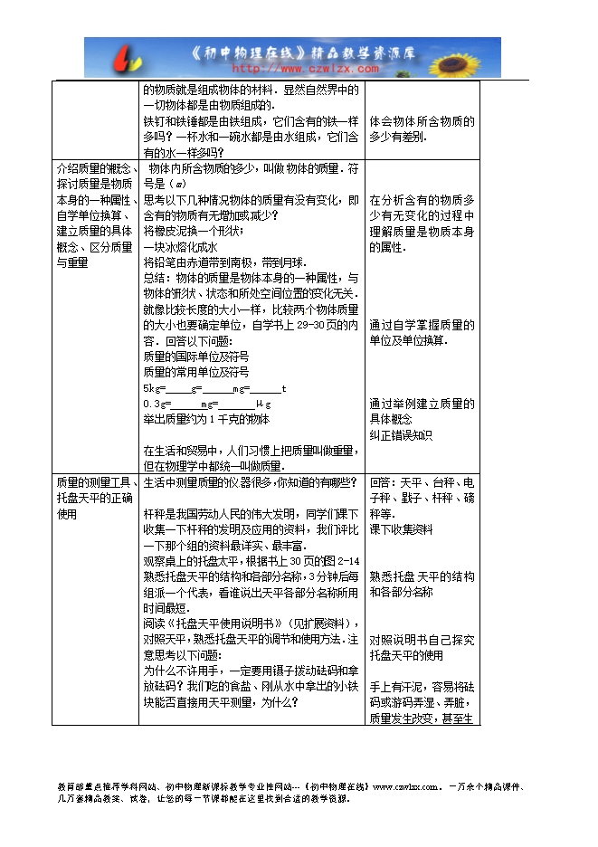 【内容简介】教学课题 物体的质量及其测量