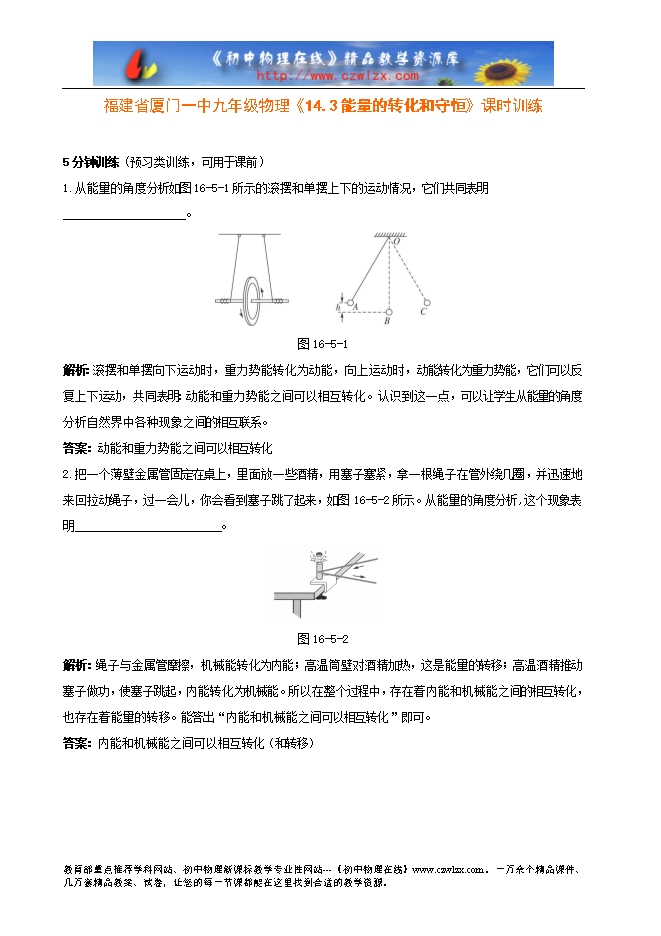 1.从能量的角度分析如图16-5-1所示的滚摆和单摆上下的运动情况,它们共同表明_____________________。