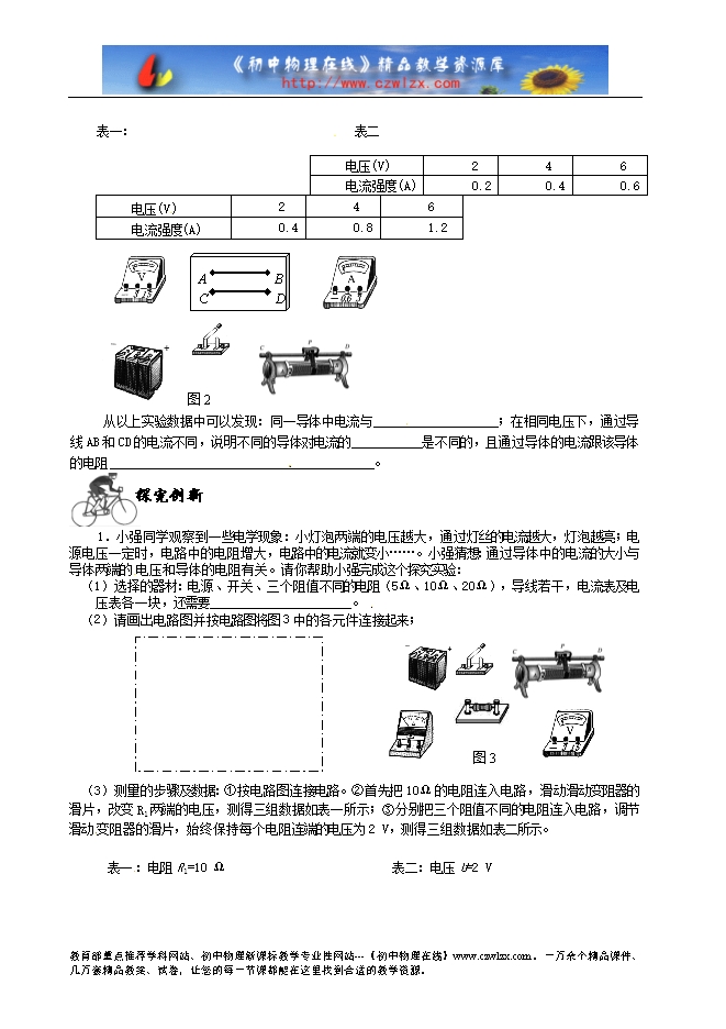 1.用下图2的实验装置来研究电流跟电压的关系。