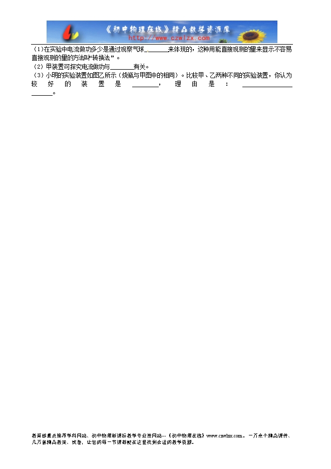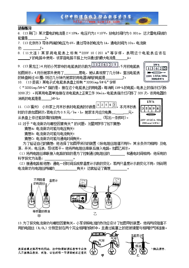 6. 电流做功的多少跟 、 、 都有关系。电 功的计算公式是 。随堂练习