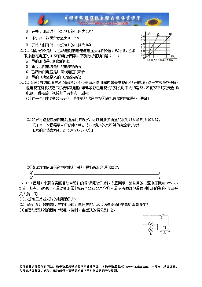 1. 一只标有“PZ220—100”字样的灯泡,正常工作100h,
