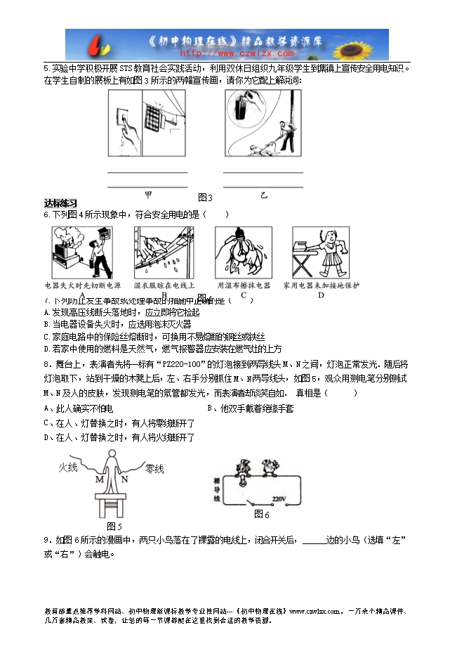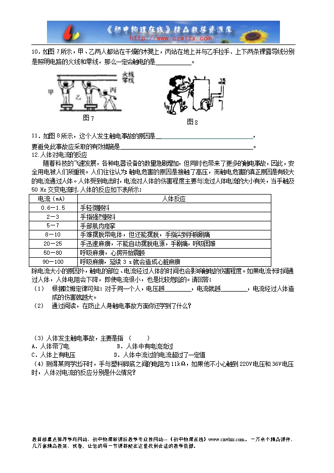6.安全用电原则:不接触 带电体,不靠近 带电体。