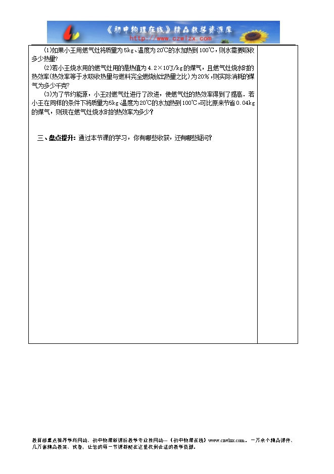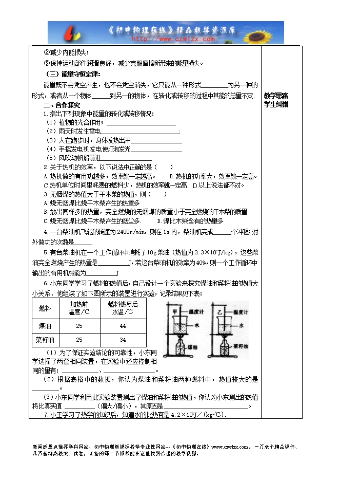 2.加强对热值和热机效率的理解,学会运用热值和热机效率公式进行简单计算;