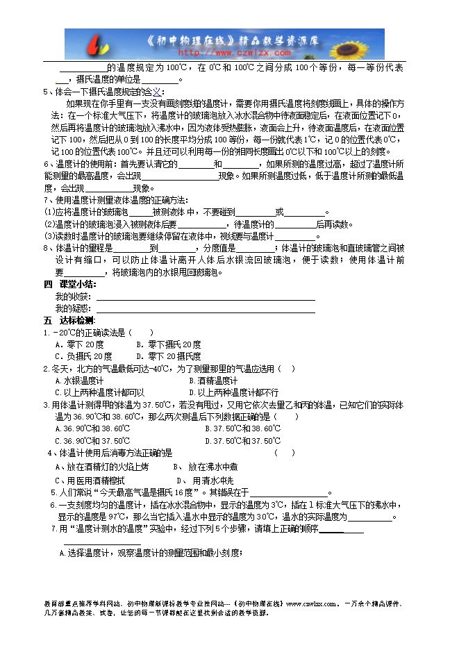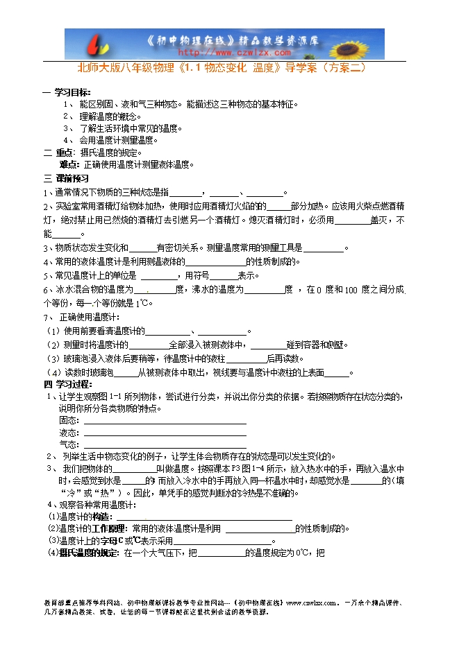 北师大版八年级物理《1.1物态变化 温度》导学案(方案二)