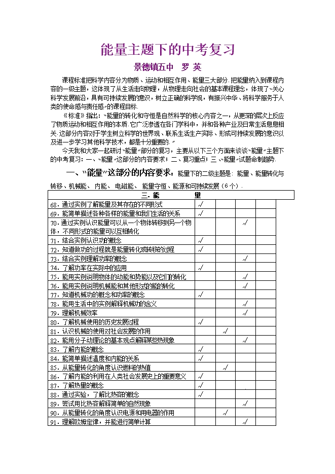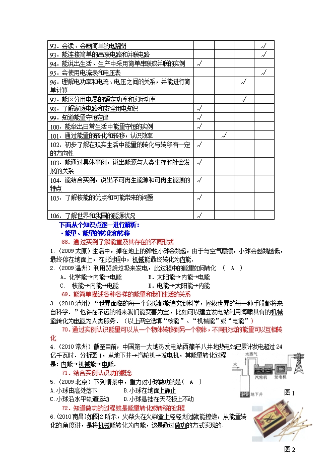 新杭中学2014-2015学年度九年级物理国庆长假复习卷(内能 内能的利用 电流和电路)