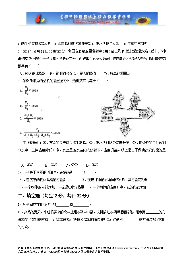6、如图所示为内燃机的能量流向图,热机效率η等于( )