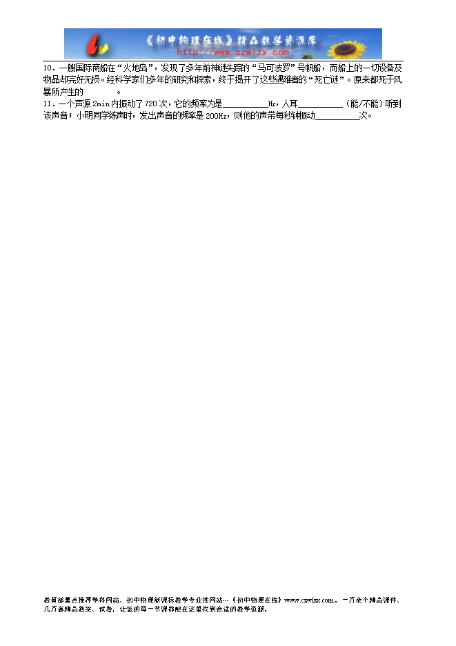 2.频率__________________的声波叫做超声波,频率__________________的声波叫做次声波。
