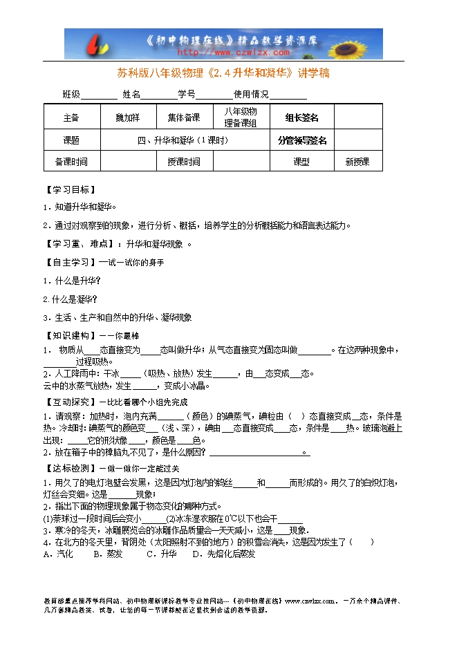 苏科版八年级物理《2.4升华和凝华》讲学稿