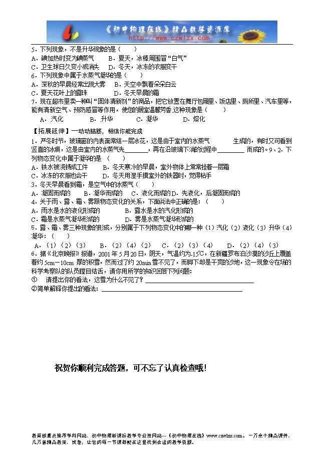 【学习重、难点】:升华和凝华现象 。