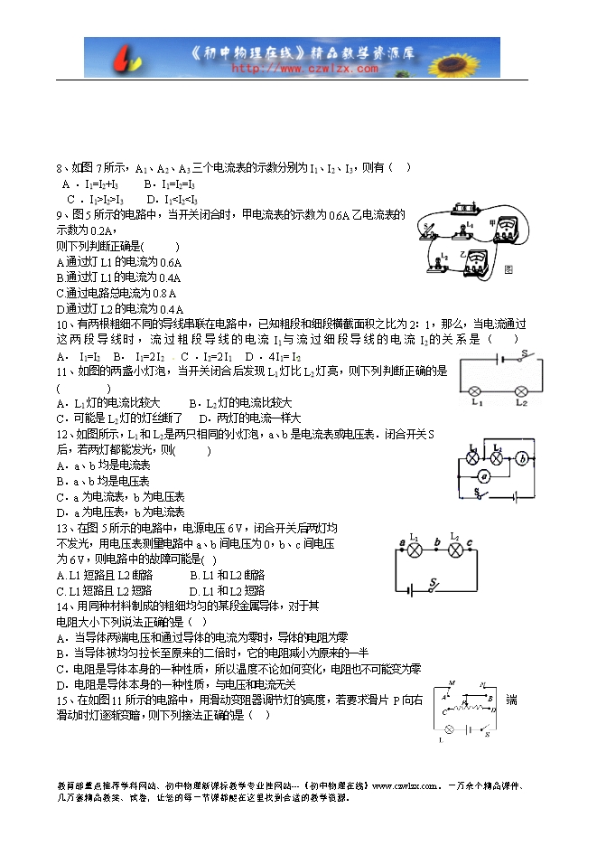 2、关于电路的知识,下列说法中不正确的是 ( )