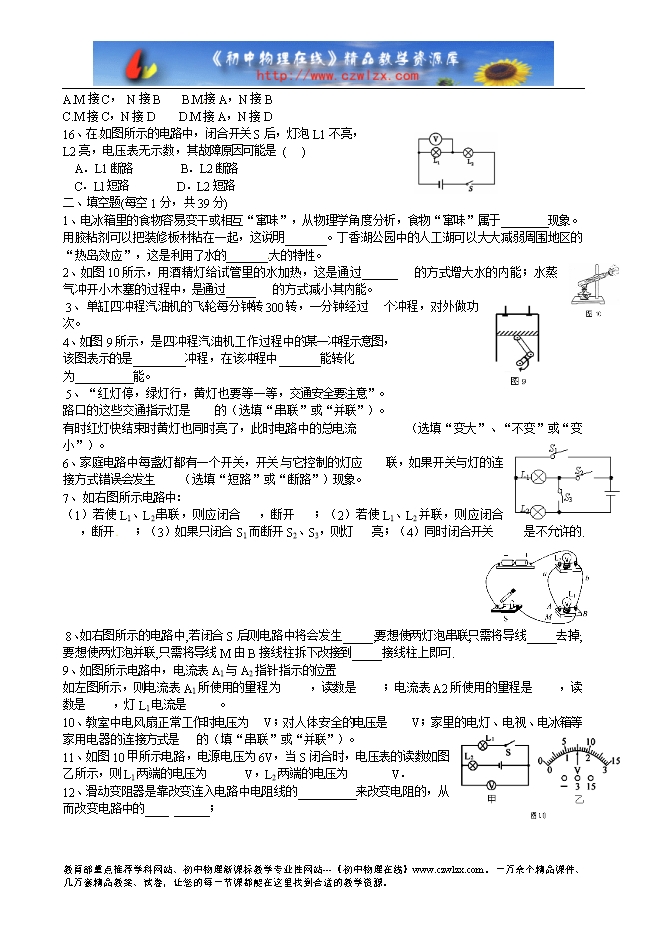 - 1650济南市十九中2014-2015学年上学期期中考试九年级物理试卷(沪科版,无答案)