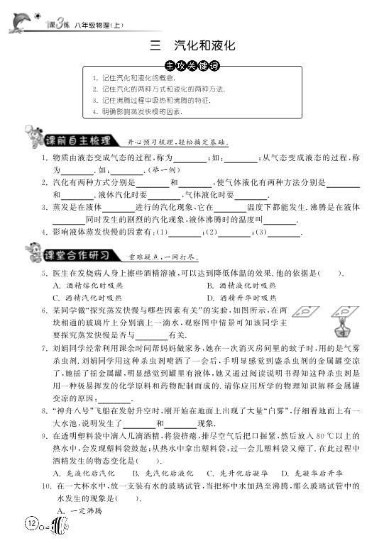 【1课3练】北师大版八年级物理《1.3汽化和液化》课前自主梳理+课堂合作研习+课后拓展探究(pdf版)