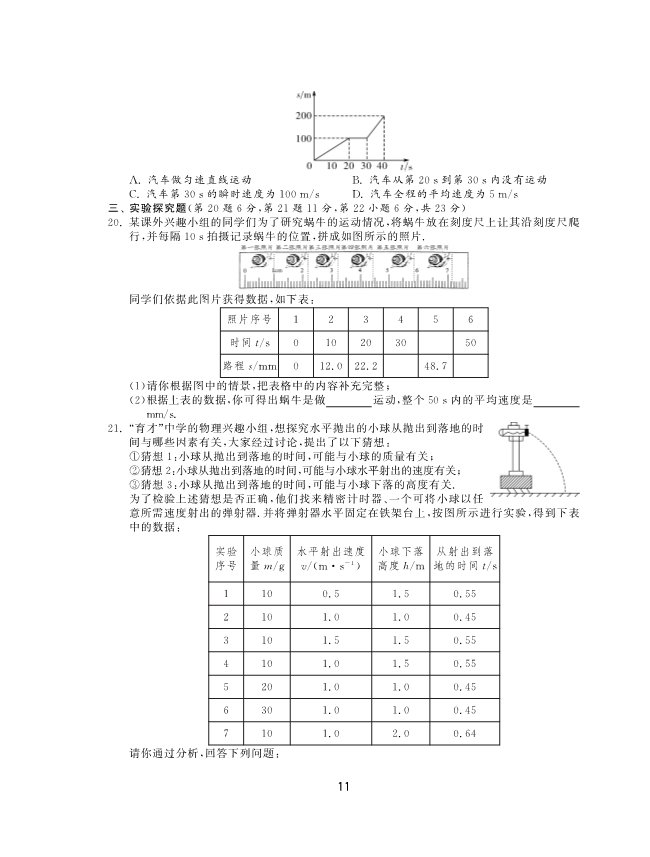 3.汽车行驶的速度是45km/h= m/s;我国列车提速后最高时速可达160km,