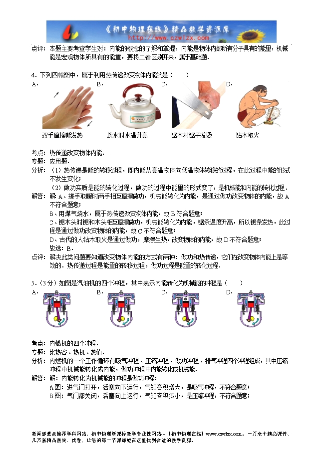 解答: 解:A、错误,物体运动的越快,物体的动能越大,物体内能没有变化;