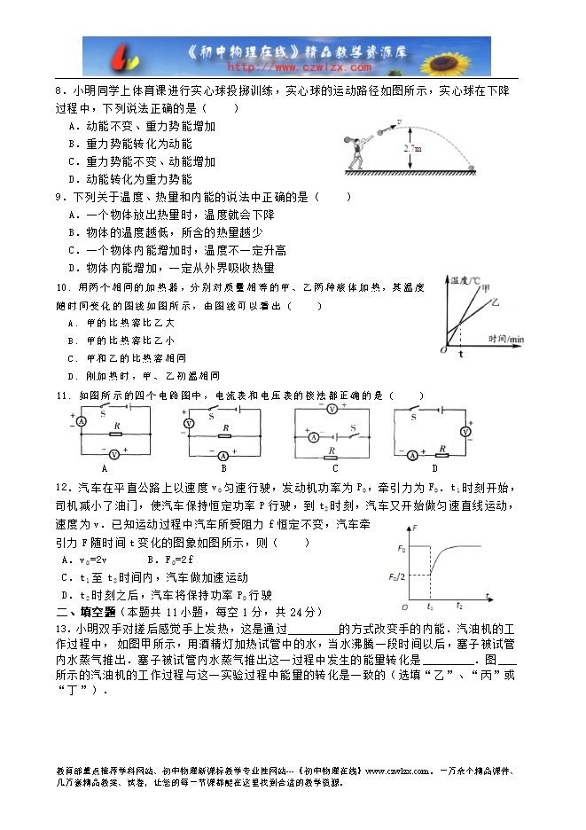 - 1767广东省湛江第二中学2015届九年级上学期期中考试物理试题及答案