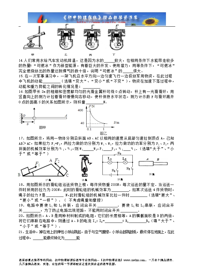 - 12302014秋九年级第一学期期中物理重点题练习及答案(word版,共21页)