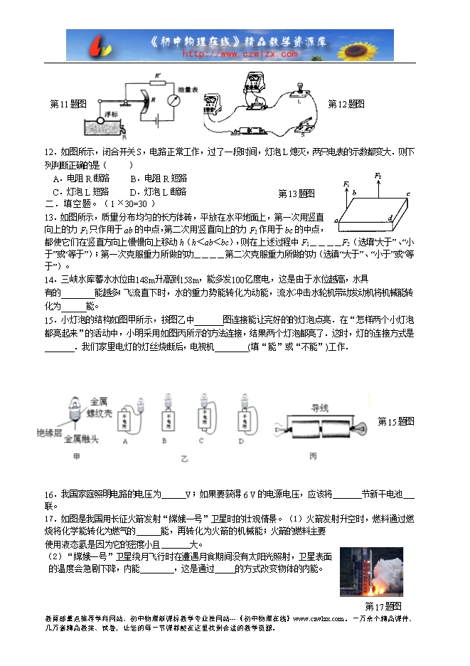 - 1166湖南省南县土地湖中学2014-2015学年第一学期九年级物理期中测试卷(含答案)