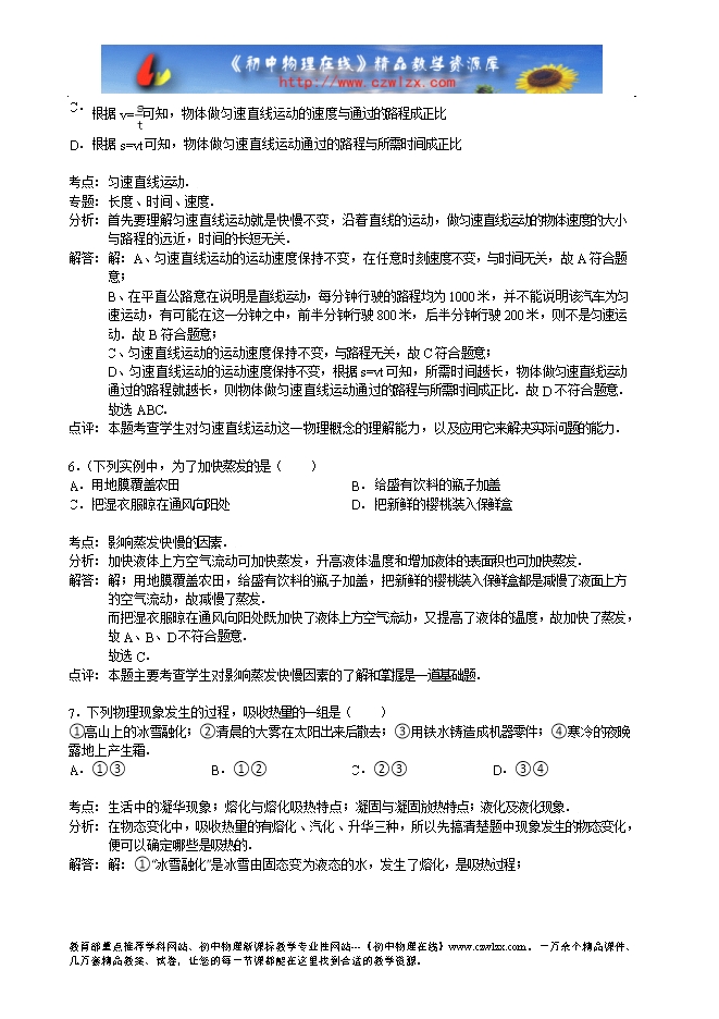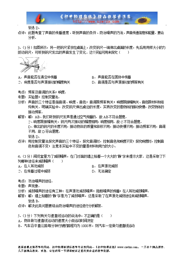 分析: A、空气中15℃时,声音的速度是340m/s.