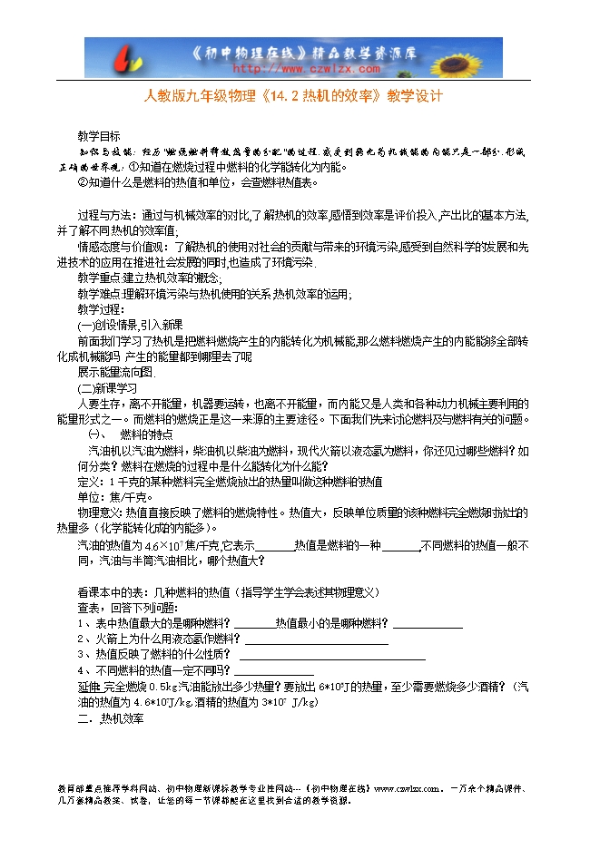 ②知道什么是燃料的热值和单位,会查燃料热值表。