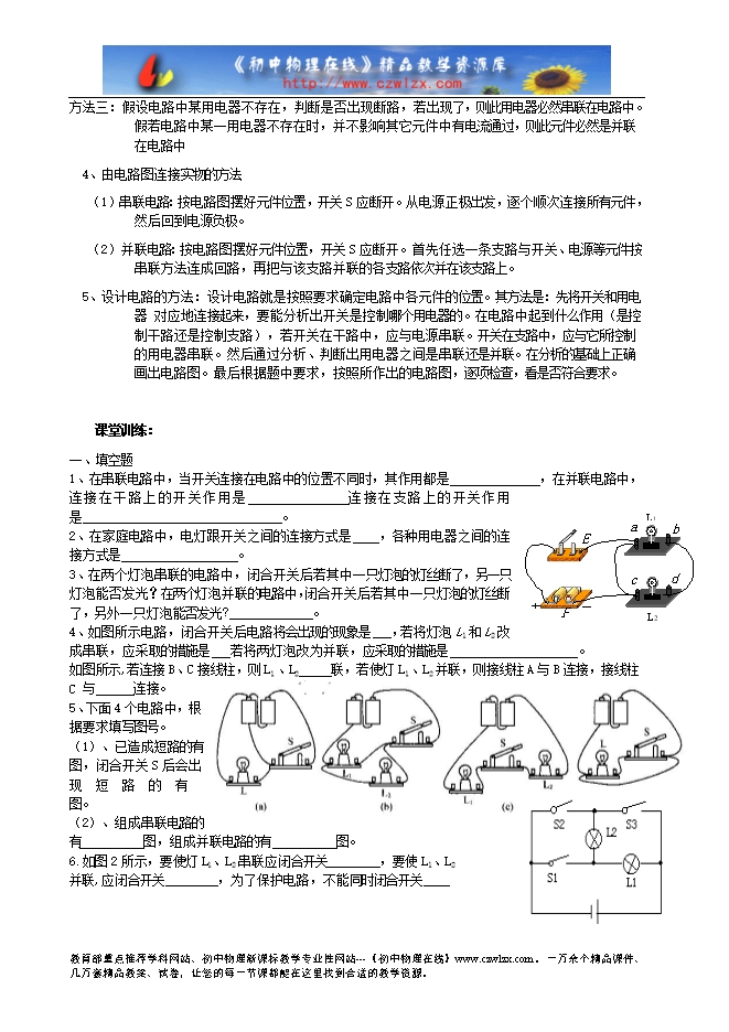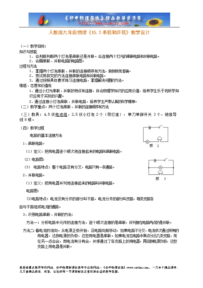 (二)教学重点:两个灯泡串联、并联的连接顺序和方法