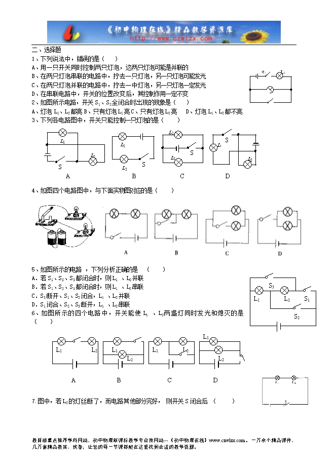 1. 会判断判断两个灯泡是串联还是并联。会连接两个灯光的串联电路和并联电路。