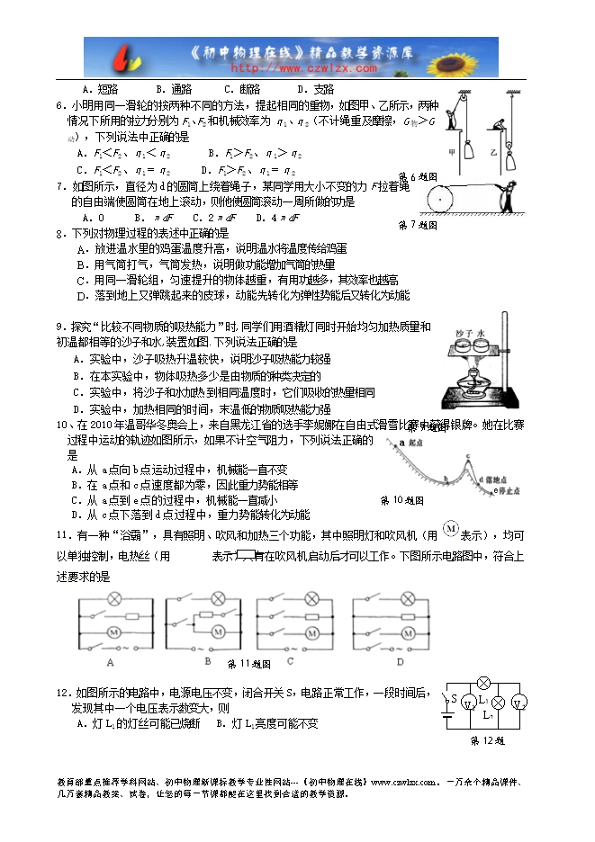 6.小明用同一滑轮的按两种不同的方法,提起相同的重物,如图甲、乙所示,两种情况下所用的拉力分别为F1、F2和机械效率为η1、η2(不计绳重及摩擦,G物>G动),下列说法中正确的是