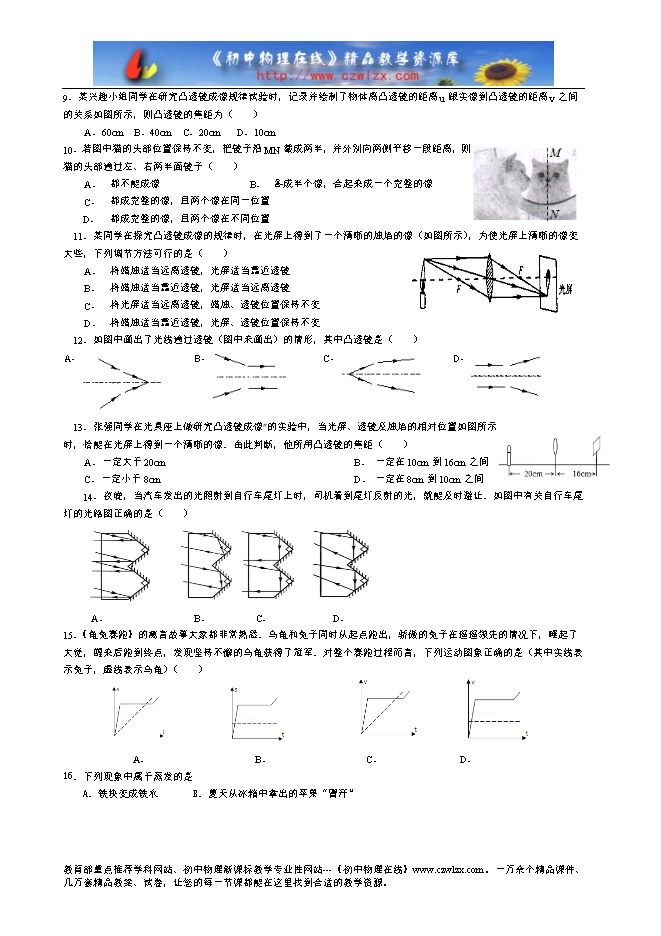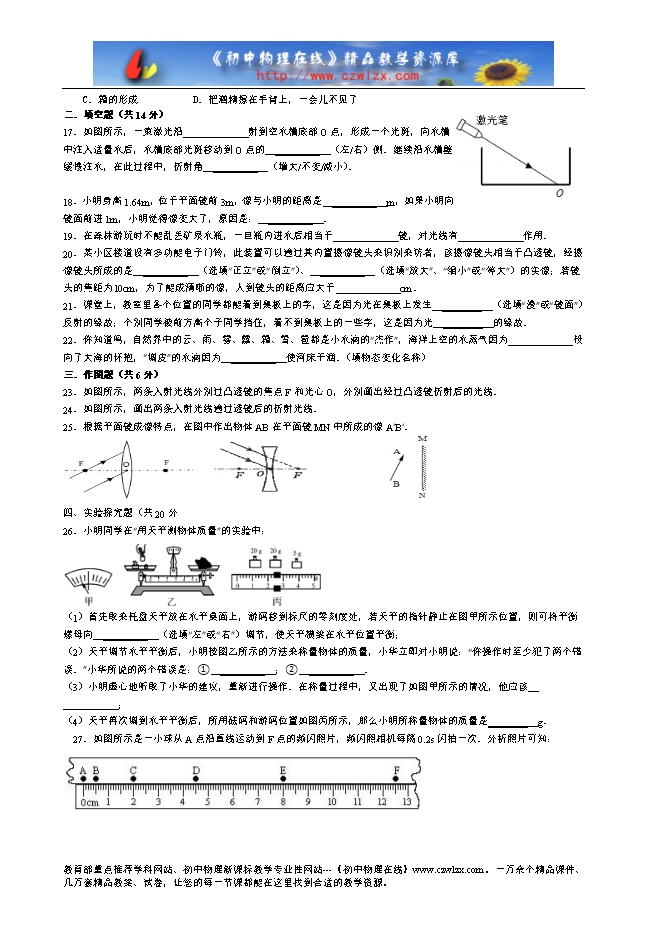 - 1821四川省广安市岳池县白庙责任区2014-2015学年八年级12月联考物理试题及答案