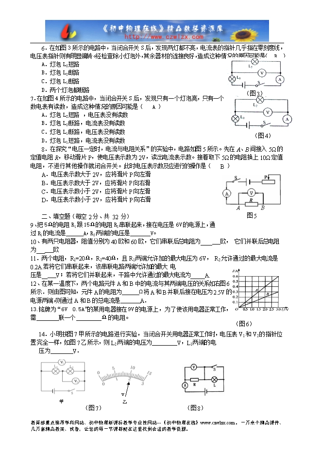 D.导体电阻的大小跟导体两端的电压和通过导体的电流无关