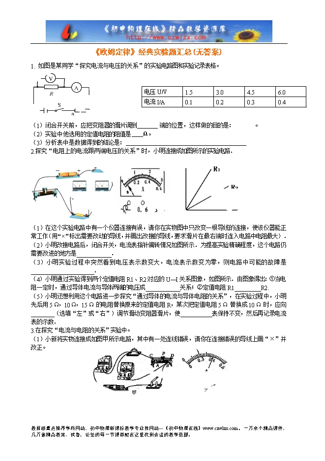 - 下一份试卷:《欧姆定律》典型题汇总(附答案)