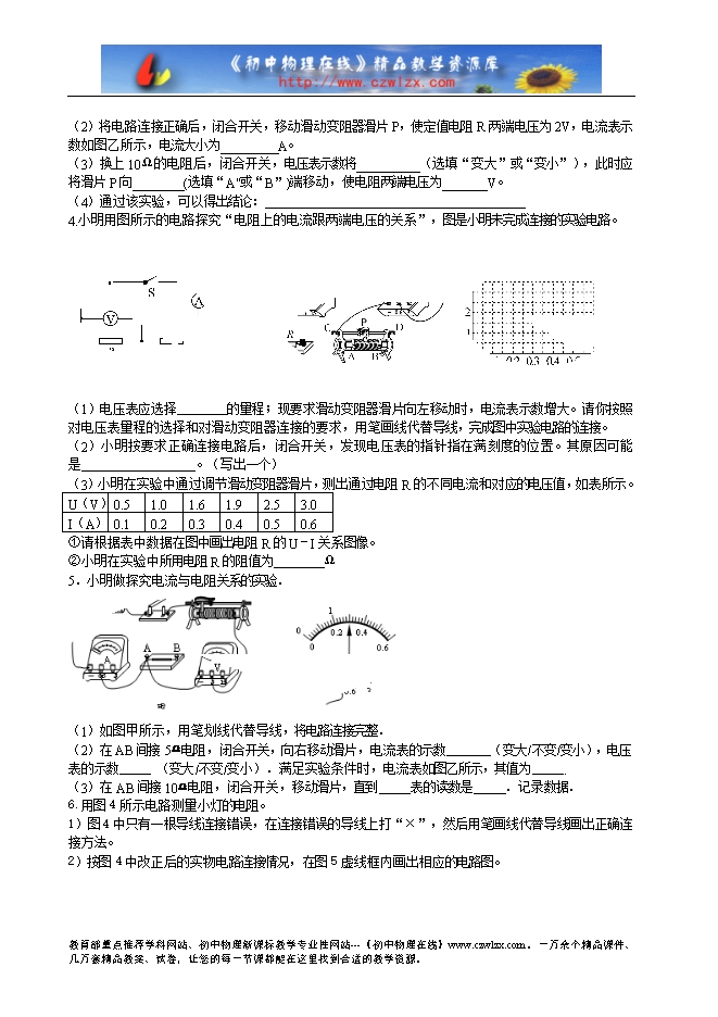 (5)小明还想利用这个电路进一步探究“通过导体的电流与导体电阻的关系”,在实验过程中,小明先后用5 ?,10 ?,15 ? 的电阻替换原来的定值电阻R,某次把定值电阻5 ? 替换成10 ? 时,应向________(选填“左”或“右”)调节滑动变阻器滑片,使___________表保持不变,然后再记录电流表的示数.