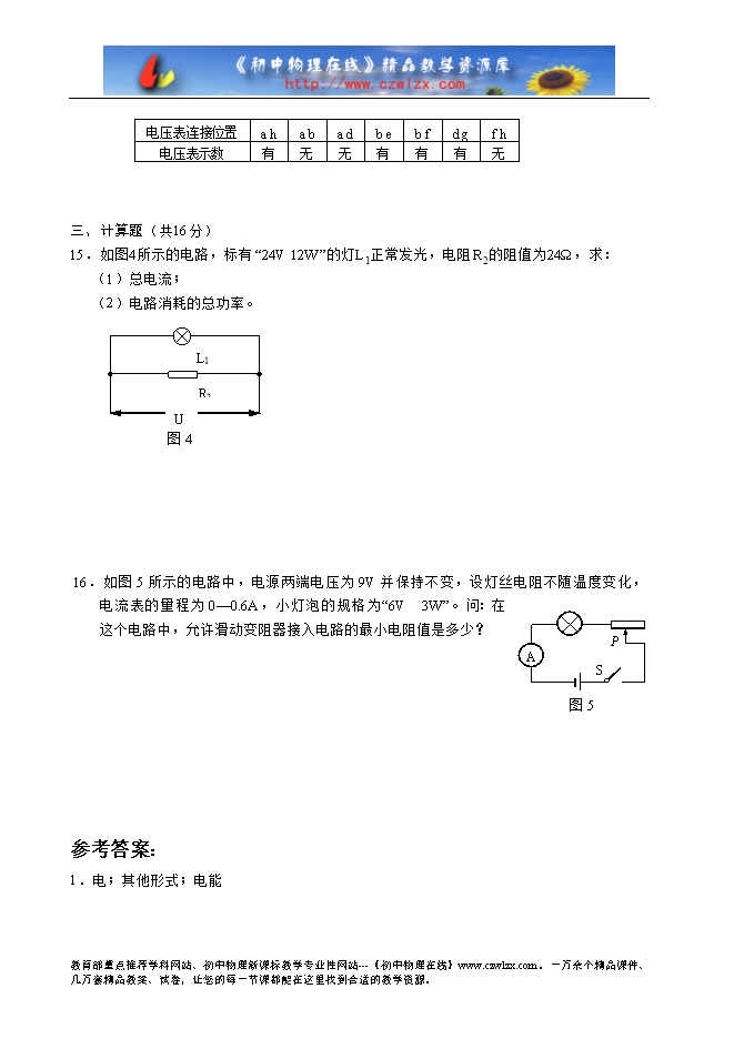 3.测量消耗电能的仪表叫 ,千瓦时(kW?h)是 的单位, 1kW?h能使100W的灯泡正常工作 小时。