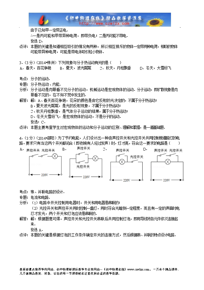 2.(3分)(2014?江西)如图所示,通草球甲、乙相互排斥,甲、丙相互吸引,如果已知甲带正电,那么乙、丙的带电情况是( )