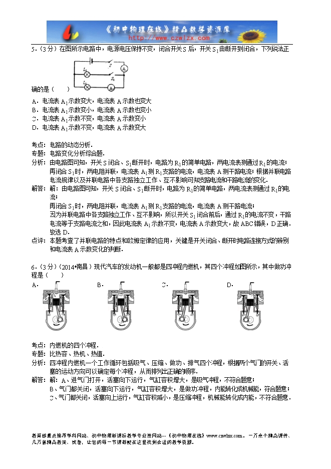 B、物体的内能增加,可能是外界对物体做功,也可能是从外界吸收了热量,故B错误;