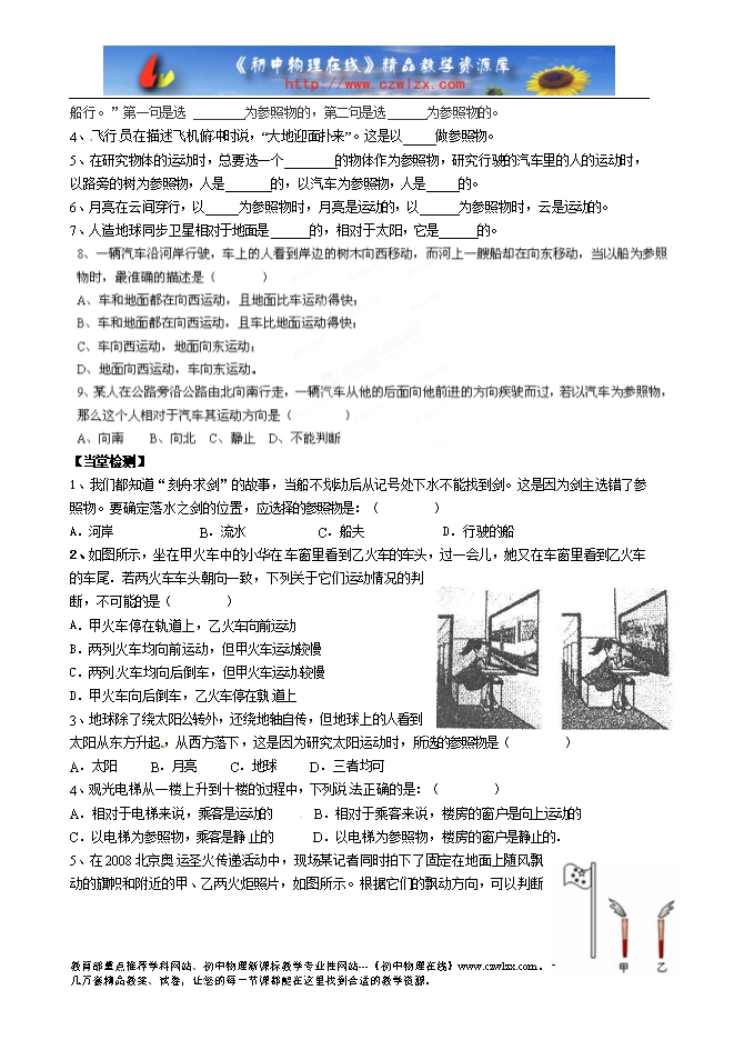 【学习难点】1、参照物的概念 2、认识物体运动的相对性