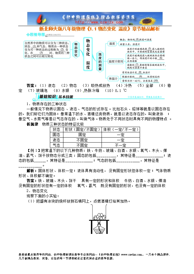 新北师大版八年级物理《1.1物态变化 温度》章节精品解析