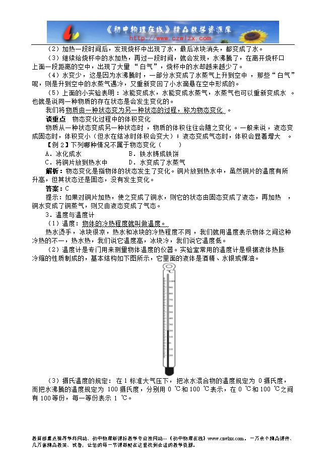 (5)上面的小实验表明:冰能变成水,水能变成水蒸气,水蒸气也可以重新变成水。也就是说同一种物质的存在状态是会发生变化的。