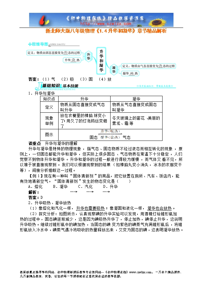 新北师大版八年级物理《1.4升华和凝华》章节精品解析